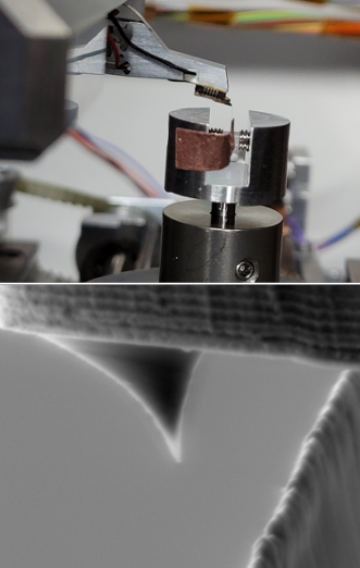 With the help of the fine positioning made possible by the SEM, different areas on the razor blade can be quickly selected and measured. In this way, variations at different points of the same sample can be examined in an easy and straightforward manner. Different material properties, such as a coatings applied to the razor blade, can be compared. An important parameter is the radius of the razor blade, as well as the roughness of the surface.